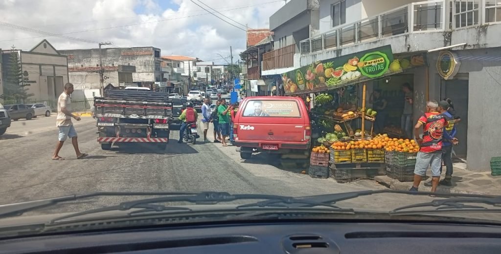 O impacto derrubou parte dos produtos e causou susto entre comerciantes e moradores da região, mas não há registro de feridos.