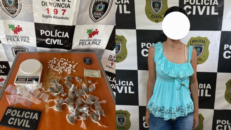 A Polícia Civil da Paraíba prendeu em flagrante, na tarde desta segunda-feira (22), uma mulher de 22 anos suspeita de tráfico de drogas no município