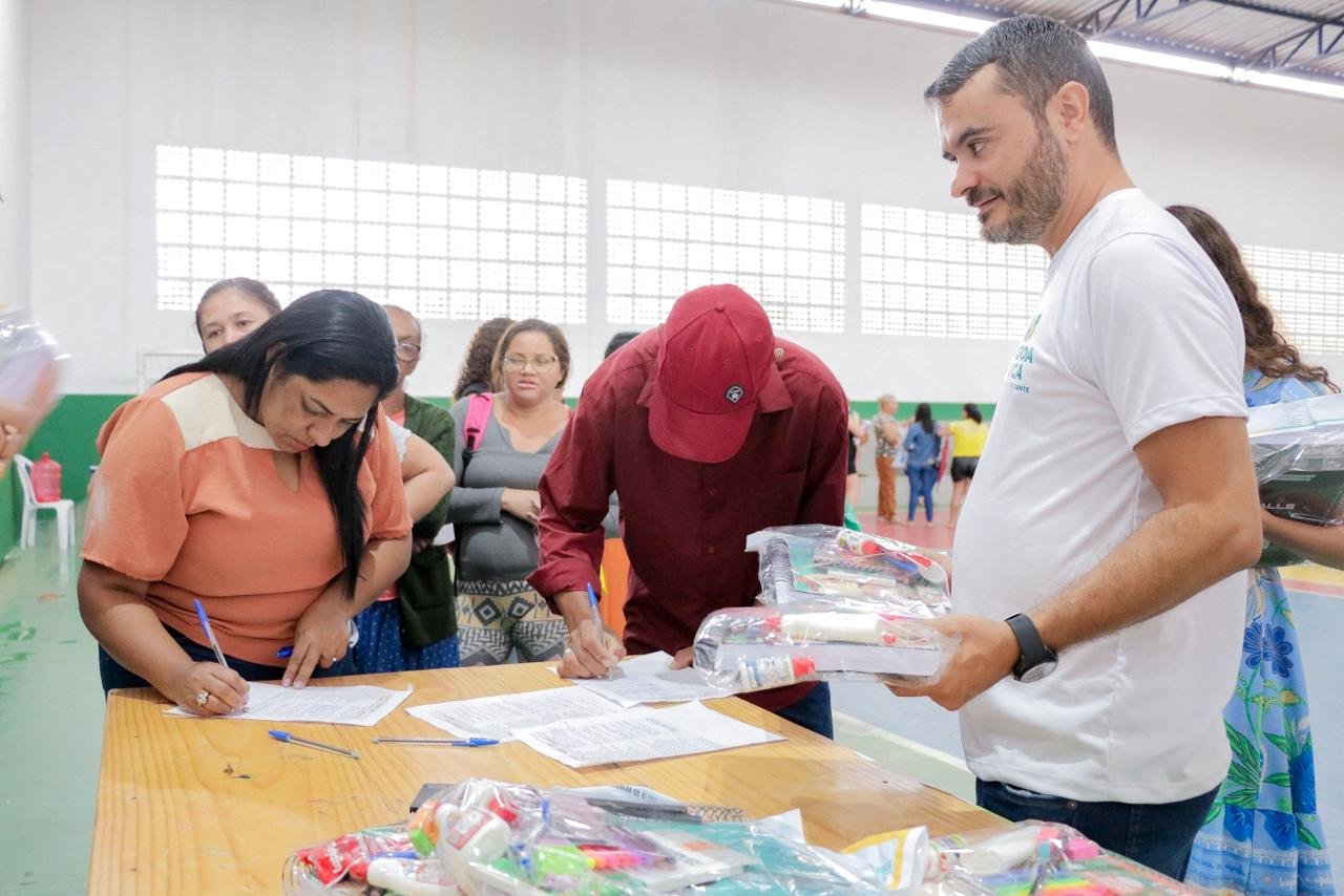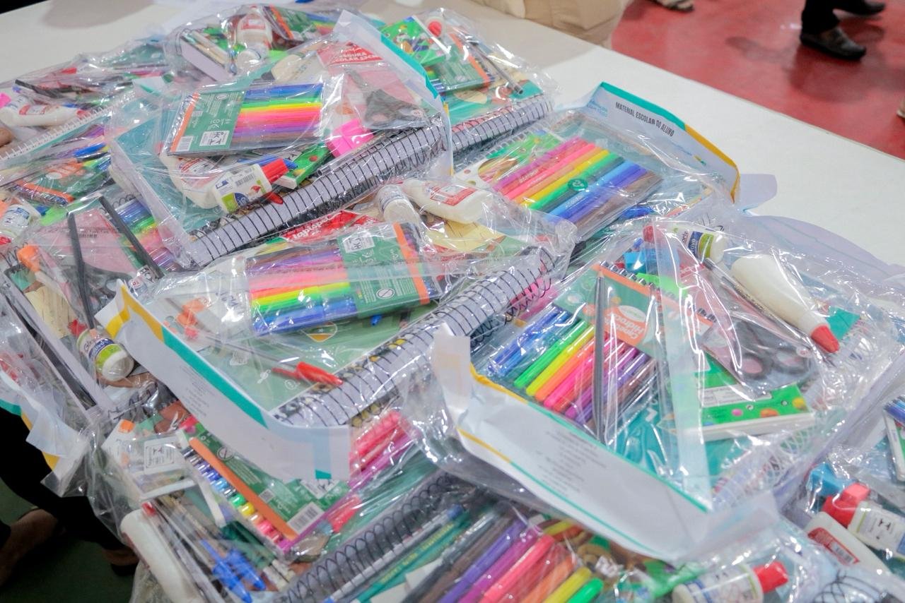Durante a ocasião, também foi realizada a entrega dos kits escolares aos estudantes. O material inclui lápis, caneta, borracha, cadernos, lapiseiras e outros itens essenciais para o dia a dia na escola.