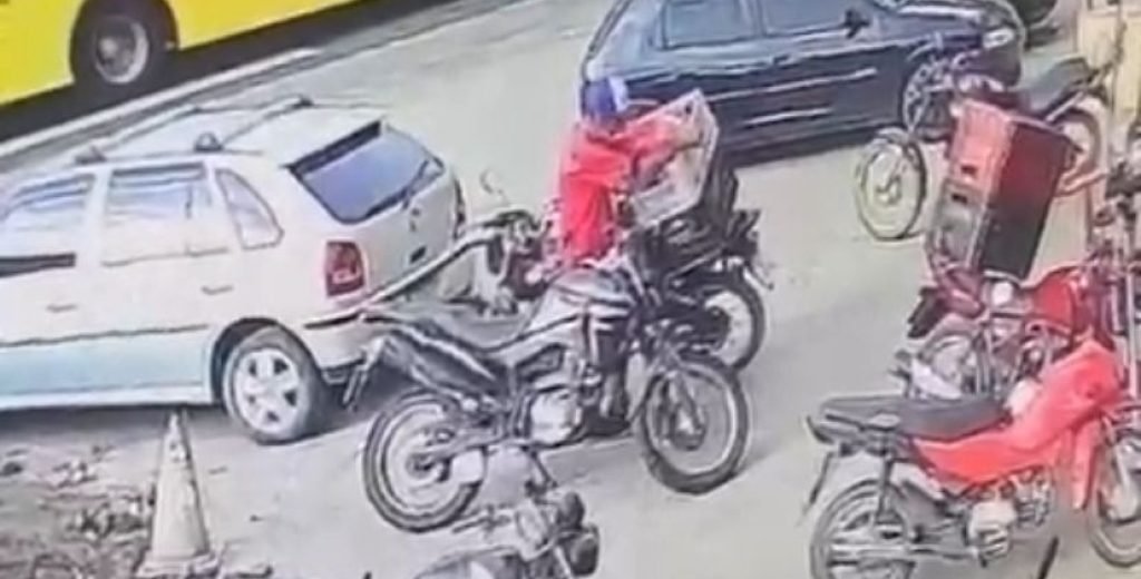 No vídeo gravado por câmera de monitoramento, às 15h52, é possível observar um homem parado no estacionamento de um supermercado situado às margens da BR-104. O suspeito passa alguns segundos olhando a movimentação, se escora na caixa acoplada em uma motocicleta e foge com alguns objetos. Mesmo com o intenso fluxo de pessoas no local, o autor do crime não se intimida e comete a ação em segundos.
